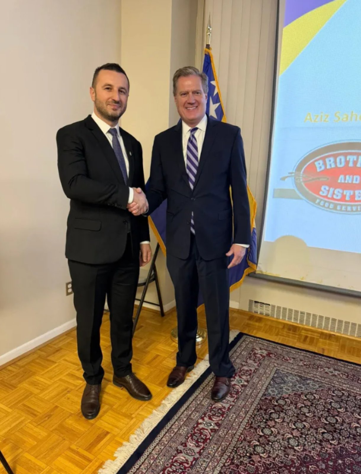 Domaćini prijema bili su predsjedavajući Predsjedništva Bosne i Hercegovine Željko Komšić te ambasador Bosne i Hercegovine u Sjedinjenim Američkim Državama i nekadašnji ministra vanjskih poslova naše države ispred SBiH, Sven Alkalaj.